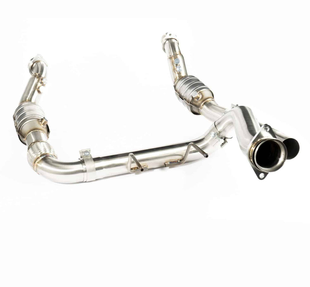 Naast het ontketenen van de kracht en prestaties van je 3.5L Twin Turbo, zullen onze High Flow-CATS je voertuig laten klinken zoals het hoort. Wanneer geïnstalleerd met de fabrieksuitlaat produceert het een luider en dieper gegrom met een veel duidelijker uitlaatgeluid. Tijdens het opschakelen geniet je van een zelfverzekerde "klap!" terwijl je door alle 10 versnellingen gaat. Het geluid zal nog luider zijn als je al een aftermarket uitlaatsysteem hebt.