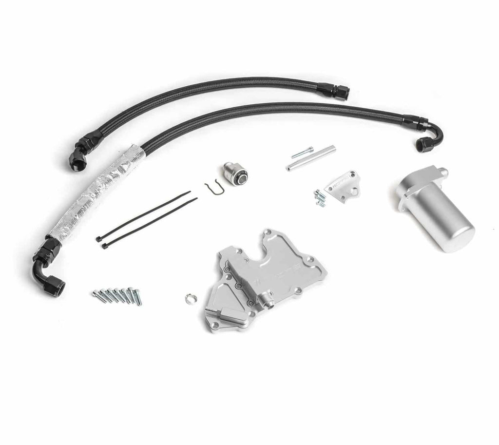 De beste olievanger oplossing voor de MK7+ GTI & Golf. De olievanger wordt gebruikt om te voorkomen dat oliedampen de inlaatmanifold binnendringen en de inlaatkleppen van motoren met directe injectie verstoppen. Olieafzettingen op de inlaatmanifold en kleppen verminderen de prestaties en veroorzaken een slecht brandstofverbruik. Houd je inlaatkleppen schoon, je motor soepel lopend, en geniet van de gemoedsrust die komt met de wetenschap dat het PCV-systeem van je auto nu vrij is van problemen. Deze olievanger is een van de meest efficiënte systemen die beschikbaar zijn, en is uitvoerig getest op onze 600pk VW Golf R.
