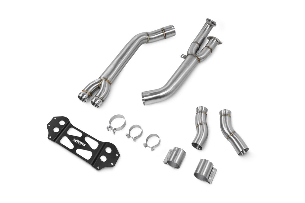 El Tubo medio único Scorpion está diseñado para el BMW G80 M3 ROW SIN GPF, G82 M4 ROW SIN GPF y G81 M3 Touring ROW SIN GPF Modelos, incluyendo las versiones Competition y xDrive de los años 2021 a 2024. Este avanzado sistema de escape intermedio combina rendimiento y estilo, lo que lo convierte en la mejora perfecta para cualquier entusiasta de la conducción. Con una amplia trayectoria en el desarrollo de escapes de alto rendimiento, Scorpion ofrece un sistema que utiliza acero inoxidable T304 de grado deportivo. Escorpión Tubo central único Fabricado con tecnología curva CNC, que proporciona un excelente flujo de gases y un rendimiento mejorado, además de una reducción significativa de peso en comparación con los sistemas OEM. El tubo intermedio cuenta con un único diámetro de 89,9 mm/3,5" que proporciona una mejor dispersión de los gases de escape, un tiempo de respuesta del turbo mejorado y un sonido potente y deportivo que mejora la experiencia de conducción. El diseño permite al conductor mantener el control del nivel de sonido mediante el botón selector de modo en el coche, lo que resulta en una experiencia de conducción dinámica. Con diferentes estilos de tubo de escape, incluyendo el Daytona de cerámica negra pulida de 114 mm o el Ascari de carbono, puede personalizar aún más la apariencia de su vehículo. El tubo intermedio es compatible con ambos modelos. Medios sistemas Scorpion como sistemas OEM, lo que le brinda la flexibilidad de personalizar el sistema de escape según sus necesidades.
