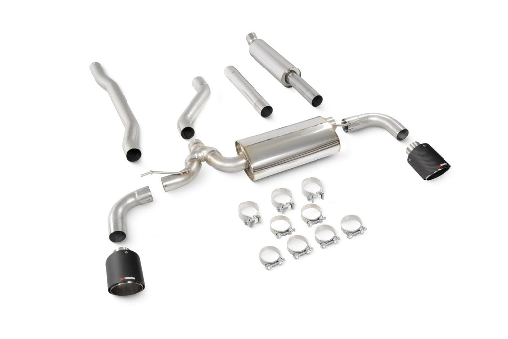 El Sistema de respaldo de gato resonante Scorpion Es imprescindible para todos Mini Clubman F54 Cooper SPropietario que busca una experiencia de conducción mejorada. Este sistema de escape de alto rendimiento es el resultado de más de 30 años de experiencia en la creación de sistemas de alto rendimiento para Minis clásicos y modernos. Diseñado cuidadosamente con tecnologías avanzadas derivadas del automovilismo, se beneficiará de un producto con un rendimiento excepcional tanto en carretera como en circuito. Escorpión Está fabricado en acero inoxidable T304 de grado deportivo, lo que garantiza una alta resistencia a la corrosión y un rendimiento duradero, incluso en las condiciones de conducción más exigentes. Con un diámetro de 70 mm (2,75 pulgadas), el sistema ofrece un flujo de gas mejorado, lo que resulta en una respuesta del acelerador más rápida y un aumento de la potencia. Este sistema cat-back está disponible en versiones resonadas (más silenciosas) y no resonadas (más potentes), lo que le permite adaptar el nivel de sonido a sus preferencias y condiciones de conducción. El sistema viene con una selección de estilos y acabados de tubo de escape, incluyendo el doble Daytona cerámico pulido/negro de 114 mm o el lujoso Ascari de carbono. Estas opciones de personalización le permiten personalizar la apariencia de su Mini y adaptarla a su gusto. Además, Escorpión Una selección de bajantes de turbo de alto flujo diseñados para optimizar aún más el rendimiento. Elija el convertidor catalítico deportivo de 200 celdas para una mejora significativa en el flujo de gases en comparación con el escape de serie, o elija el descatalizador sin restricciones para obtener el máximo rendimiento (solo para competición). Escorpión El sistema Cat-Back resonante no es solo una mejora para su auto; es una inversión en placer de conducción. Disfrute de un sonido rico y deportivo que eleva su experiencia de conducción. Con la ingeniería de precisión de Escorpión Obtendrás un sistema de escape que no solo hace que tu automóvil suene más potente, sino también más impresionante.