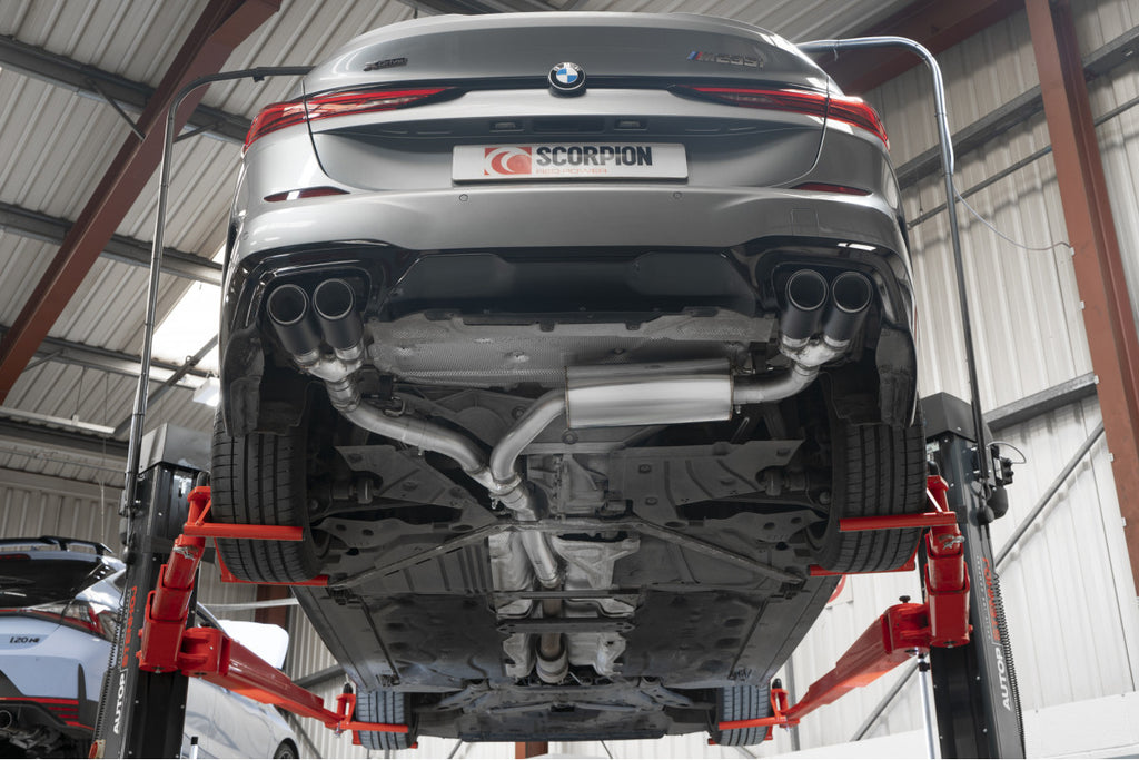 El Sistema Scorpion GPF-Back es un sistema de escape avanzado diseñado para el BMW M235i xDrive Gran Coupé De 2019 a 2024. BMW se estableció como un fabricante líder de sedanes de alto rendimiento en la década de 1970, siendo el legendario E30 M3 uno de los primeros modelos en allanar el camino para una gama de actuaciones impresionantes en el automovilismo. Escorpión tiene una larga trayectoria en el desarrollo de sistemas de escape de alto rendimiento, comenzando con el E30 M3 y evolucionando continuamente desde entonces. Este sistema de escape premium está fabricado en acero inoxidable T304 y cuenta con un diámetro de 70 mm/2,75" para un flujo de gases óptimo. Gracias a los tubos doblados con mandril CNC, este sistema maximiza el rendimiento al mejorar la evacuación de los gases de escape. Cuando... Sistema de escorpión Al instalarlo, los conductores experimentan una reducción significativa de peso en comparación con el sistema de escape original, lo cual es crucial para mejorar la experiencia de conducción. El sistema cuenta con un silenciador de ingeniería acústica que elimina las resonancias no deseadas, manteniendo una experiencia de conducción cómoda. Para quienes desean un sonido más potente y deportivo, Escorpión La opción de eliminar el filtro de partículas del escape (GPF), que mejora aún más la experiencia de sonido, permite a los usuarios personalizar sus vehículos con una amplia gama de colas de escape. Los clientes pueden elegir entre Ascari de carbono de 90 mm, Daytona pulido, Daytona cerámico negro o una opción exclusiva de equipo original que complementa a la perfección el difusor existente del BMW. Con el... Sistema Scorpion GPF-Back Combina no solo un rendimiento impresionante, sino también una experiencia estética y de sonido única, lo que lo convierte en el BMW M235i xDrive Gran Coupé se convierte en un coche aún más atractivo.