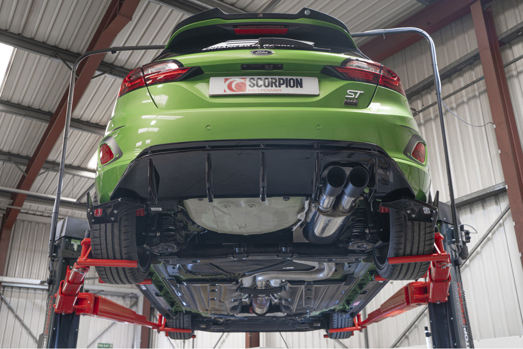 El Sistema de espalda SCORPION GPF Sin válvula es una solución de escape de alta calidad para el Ford Fiesta ST Mk8.5 (2022-2024)Ford se ha ganado una sólida reputación por producir autos deportivos de alto rendimiento desde la década de 1970, comenzando con el legendario Escort RS1600 Mk1Esta larga línea de modelos icónicos, que incluye el Escort RS Turbo y el Sierra RS Cosworth, siempre se ha beneficiado de la innovación de Scorpion en el desarrollo de escapes de alto rendimiento. Este nuevo sistema GPF-back tiene un diámetro de 70 mm (2,75") y está fabricado en acero inoxidable T304 de primera calidad, lo que garantiza el máximo rendimiento y un mejor flujo de gases. Desarrollado específicamente para el Fiesta ST MK8.5, este sistema ofrece un ahorro de peso significativo en comparación con el escape original, crucial para una experiencia de conducción óptima. El silenciador se ha desarrollado acústicamente para eliminar el zumbido indeseado durante la conducción, a la vez que proporciona un sonido deportivo que mejora la experiencia de conducción. Para la estética de su coche, ofrecemos Escorpión Tres estilos cuidadosamente seleccionados de nuestros tubos de escape exclusivos: Daytona Pulido, Carbono Ascari y Daytona Cerámico Negro. Estas opciones te dan la oportunidad de personalizar tu auto con una calidad de construcción inigualable. Si buscas mejorar aún más su rendimiento, puedes considerar agregar la sección de eliminación del filtro de aire de escape (GPF) a tu configuración. Nuestros ingenieros la diseñaron para que sea totalmente intercambiable con el OEM y... Escorpión Escapes traseros GPF. También ofrecemos bajantes de alto flujo para Fiesta, disponibles en Decat o Sports Cat, para optimizar aún más el rendimiento. Para quienes buscan el máximo rendimiento, Escorpión Se desarrolló el sistema Predator, que mejora significativamente el flujo de gas y amplifica los sonidos del motor, lo que da como resultado una experiencia de conducción inigualable. Escorpión acústica (sólo para uso en circuito cerrado).